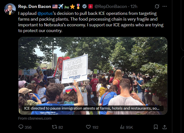 Congressman Don Bacon, has chimed in with support (https://x.com/RepDonBacon/status/1934054177577320485). Another tactical maneuver?