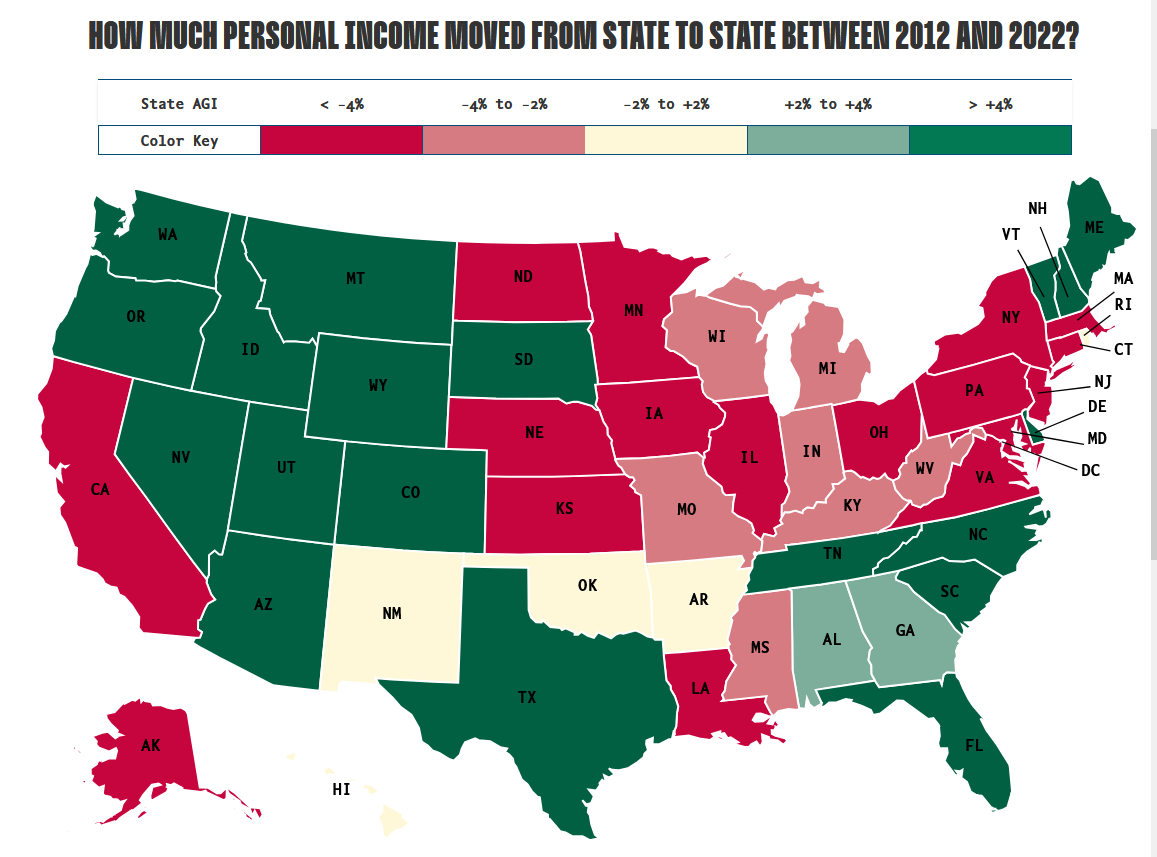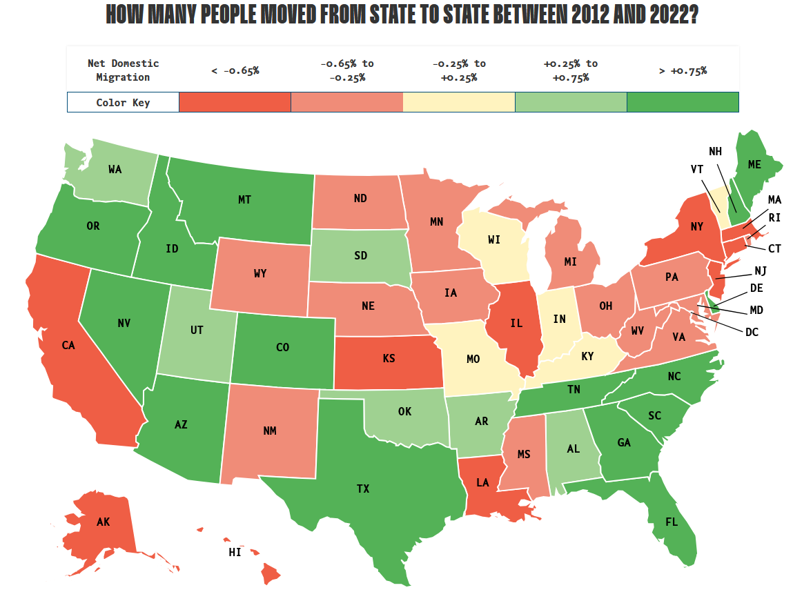 With this map below, you can see people are leaving Nebraska but it does not seem so bad compared to Illinois, New York, Kansas, and California.