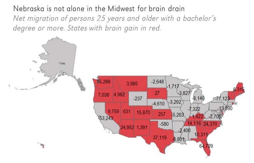 Way too often, Nebraska’s local leaders point to Nebraska’s brain-drain (https://www.unomaha.edu/college-of-public-affairs-and-community-service/center-for-public-affairs-research/documents/brain-drain-2022-release.pdf). My take is Nebraska universities play the role of advocating for “get out of Nebraska why you can” indoctrination. I want to fully blame them for this trend but if I did, I would be missing out on the larger problem.